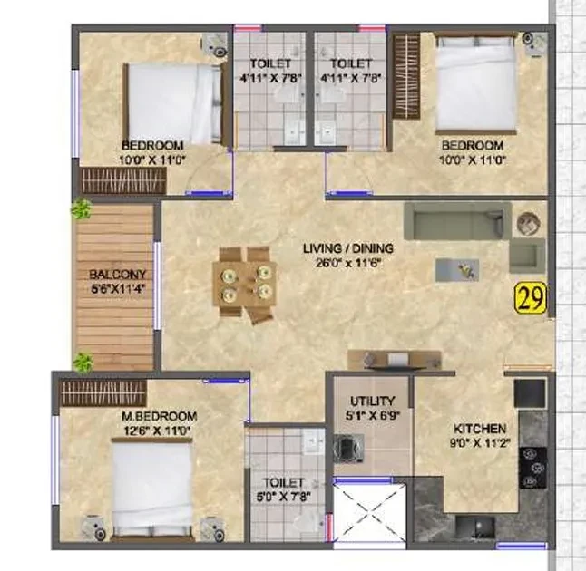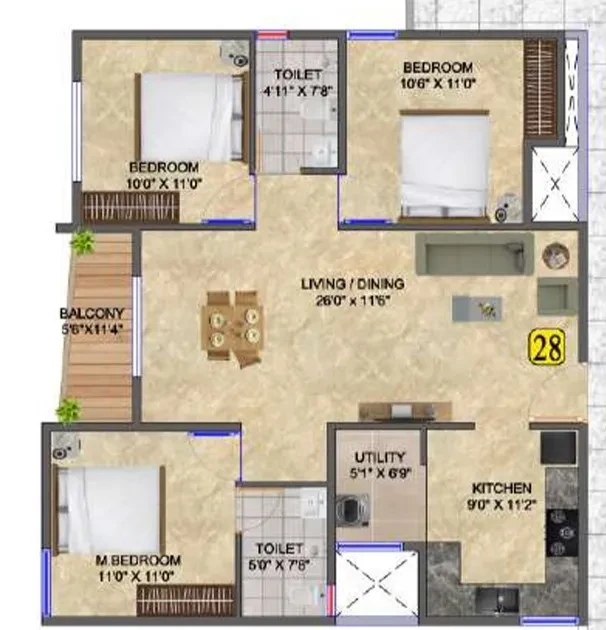 - AC Provision for Master Bedrooms