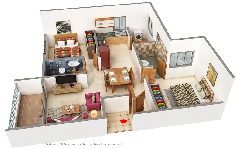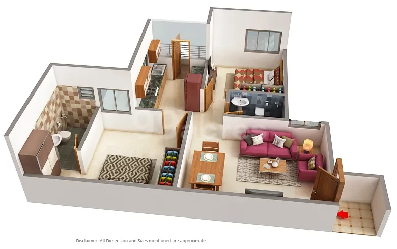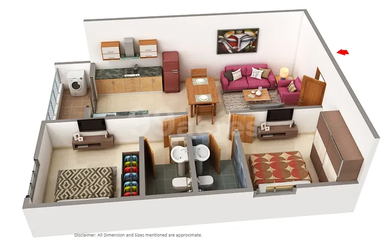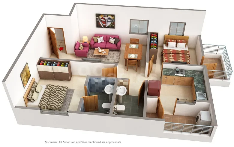 - Living /Dining: Vitrified tiles