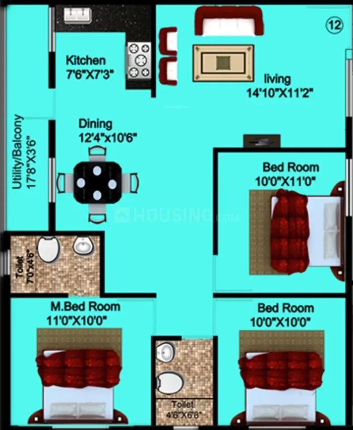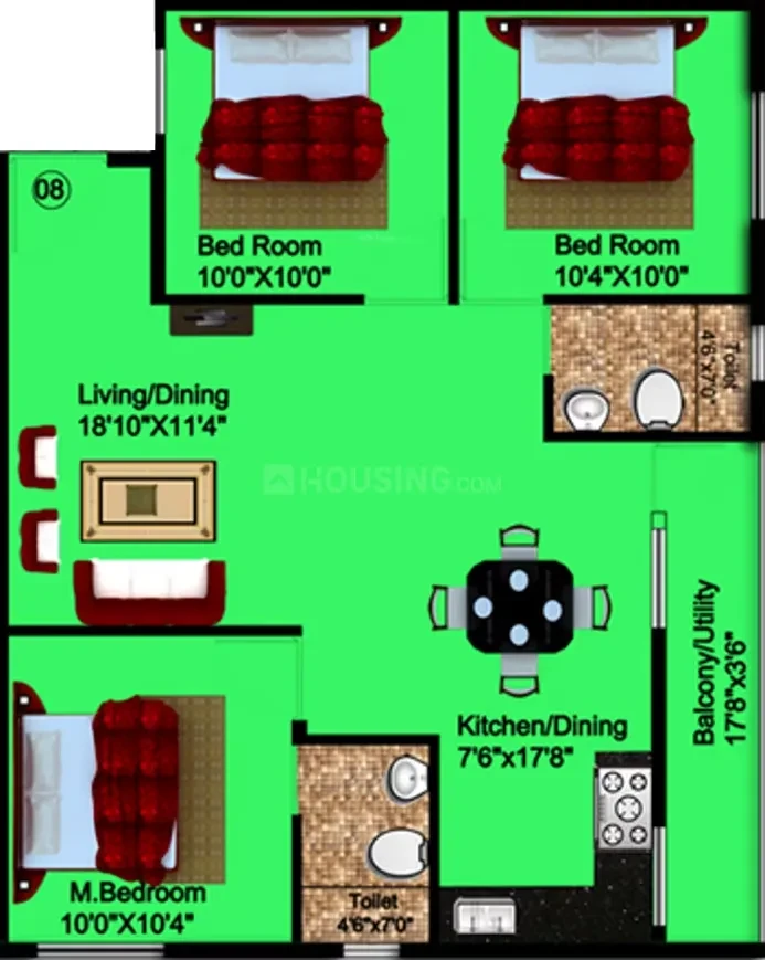 - Balconies & Utility: Anti-Skid Ceramic tiles