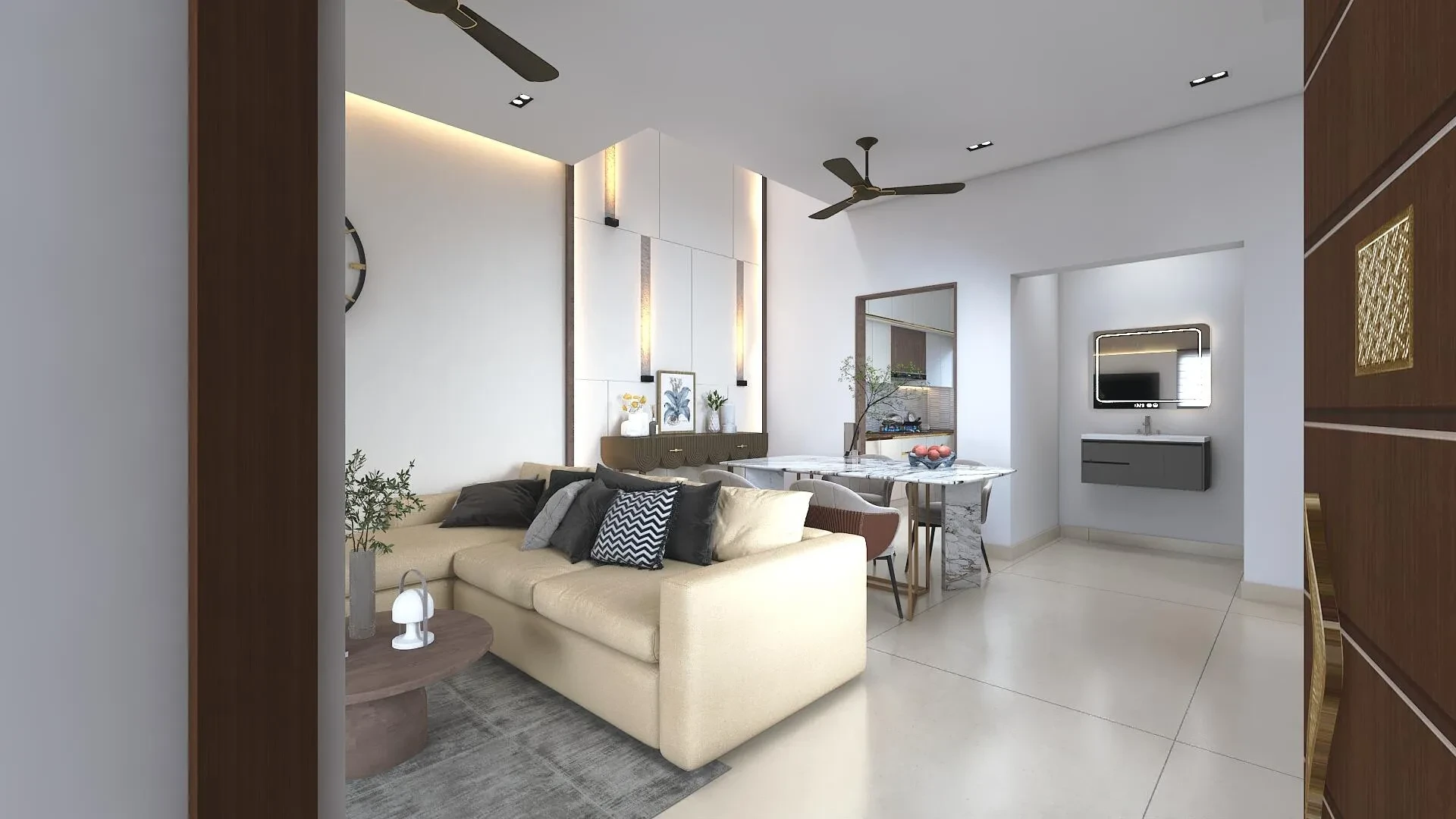 Foyer, living, dining, bedrooms & kitchen: Vitrified tiles of size 4' x 2' from Kajaria/Somany or equivalent will be provided