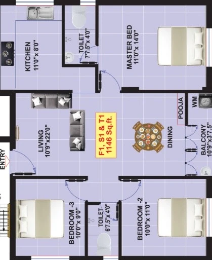 Provisions: Split A/C (hall and all bedrooms), TV (hall and all bedrooms), Exhaust Fan Point (all Bathrooms and kitchen), Geyser Point (all toilets), Inverter wiring (all rooms), Water Purifier & Chimney point (kitchen), Inverter (balcony), Night lamps point (all bedrooms).