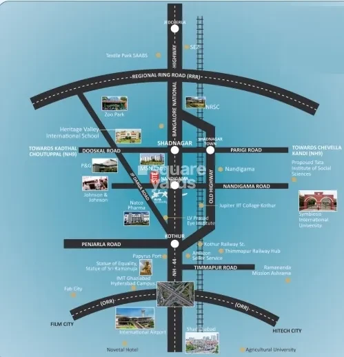 Eeshanya's Jewel City is a gated community HMDA and RERA approved plotted venture situated in the serene and tranquil Nandigam village, Kothur, near Shahnagar, Ranga Reddy District. This well-developed community provides a cozy living experience with all necessary amenities. HMDA Open plots for sale in Kothur near Hyderabad Airport corridor, the open plots venture has excellent connectivity to the entire city via Outer Ring Road (ORR) and proposed Regional Ring Road (RRR) at Shadnagar. The project is in close proximity to Shamshabad, which is home to many tech parks and MNCs, and the Kothur-Shadnagar-Jadcherla corridor is undergoing vast infrastructural development.