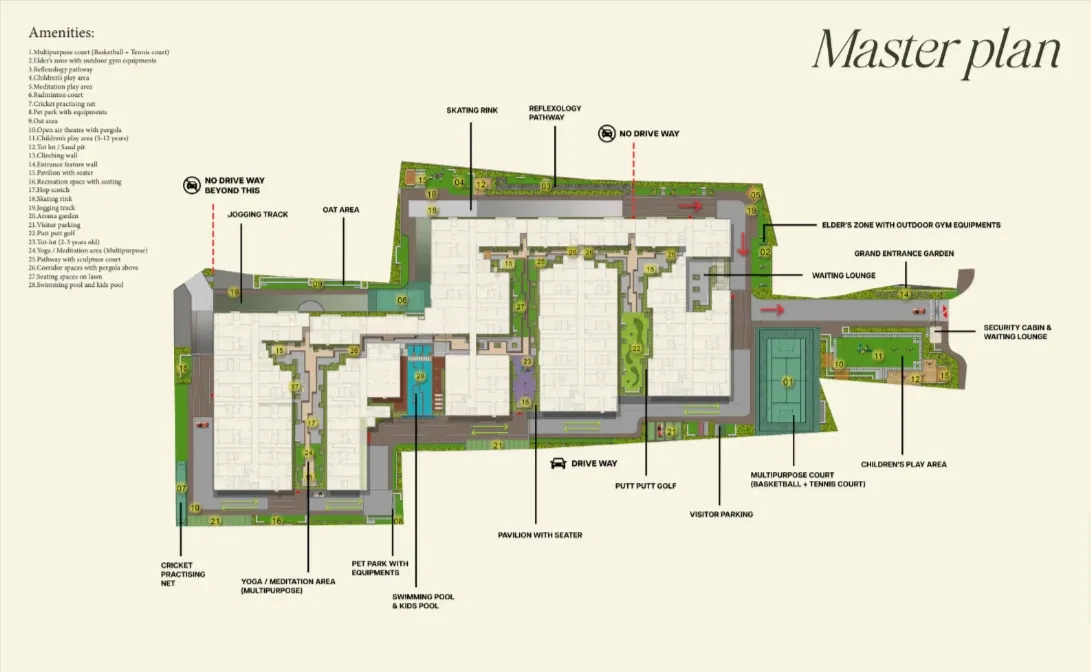 Island-Themed Design: The project features a unique layout with no common walls between units and a dedicated 8-foot setback between towers to ensure maximum privacy and ventilation.