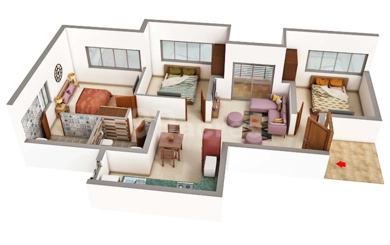 - Kitchen & Bathrooms: Provisions for modular kitchen; toilets feature premium fittings.