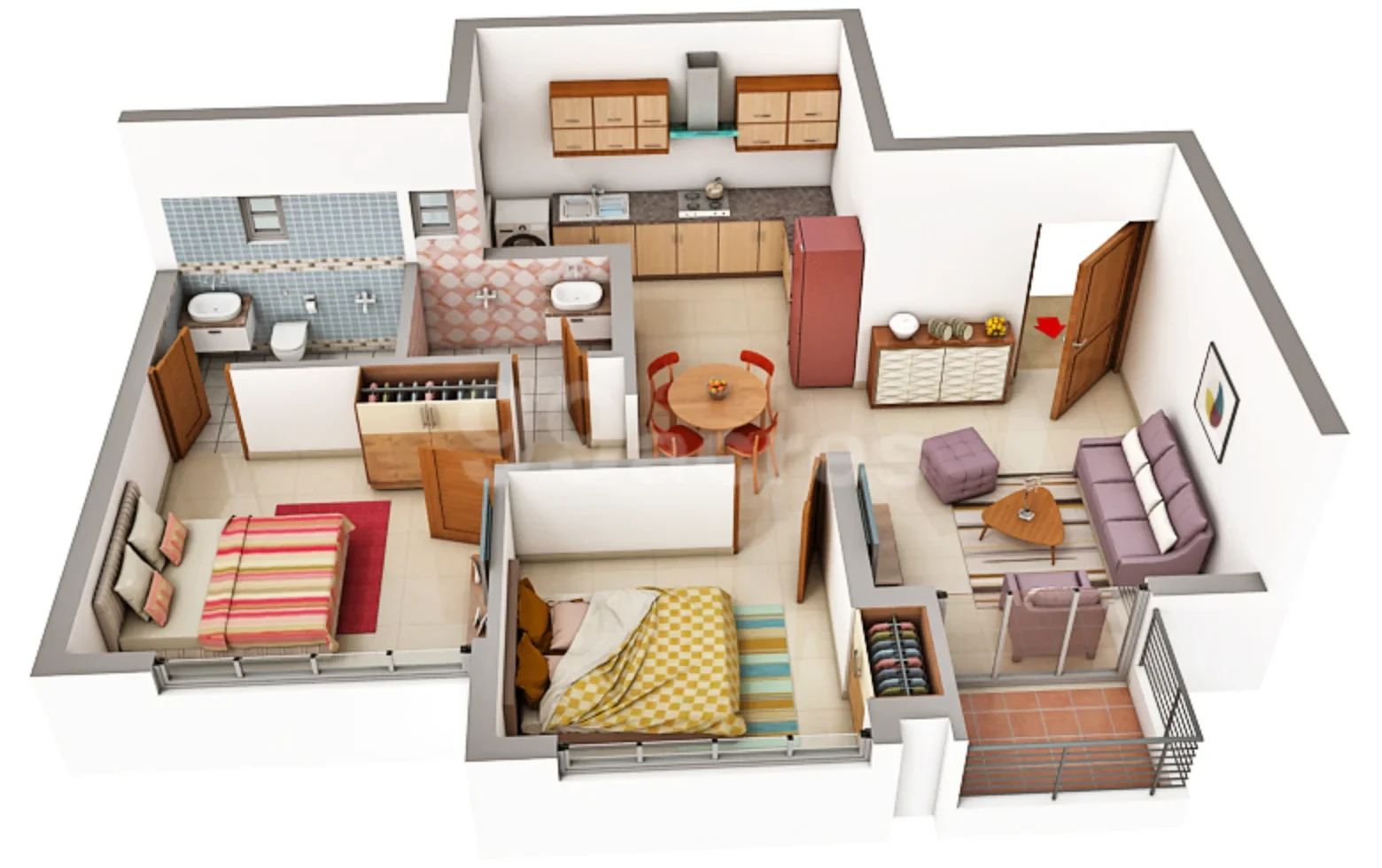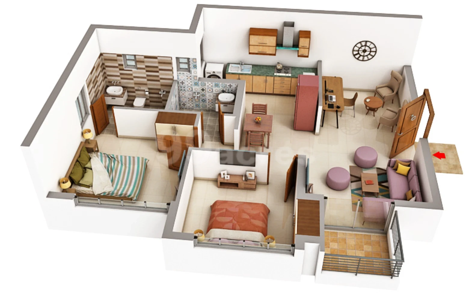 - Apartment Features: 2x2 vitrified tiles for living, dining, and bedrooms; hardwood door frames with flush shutters.
