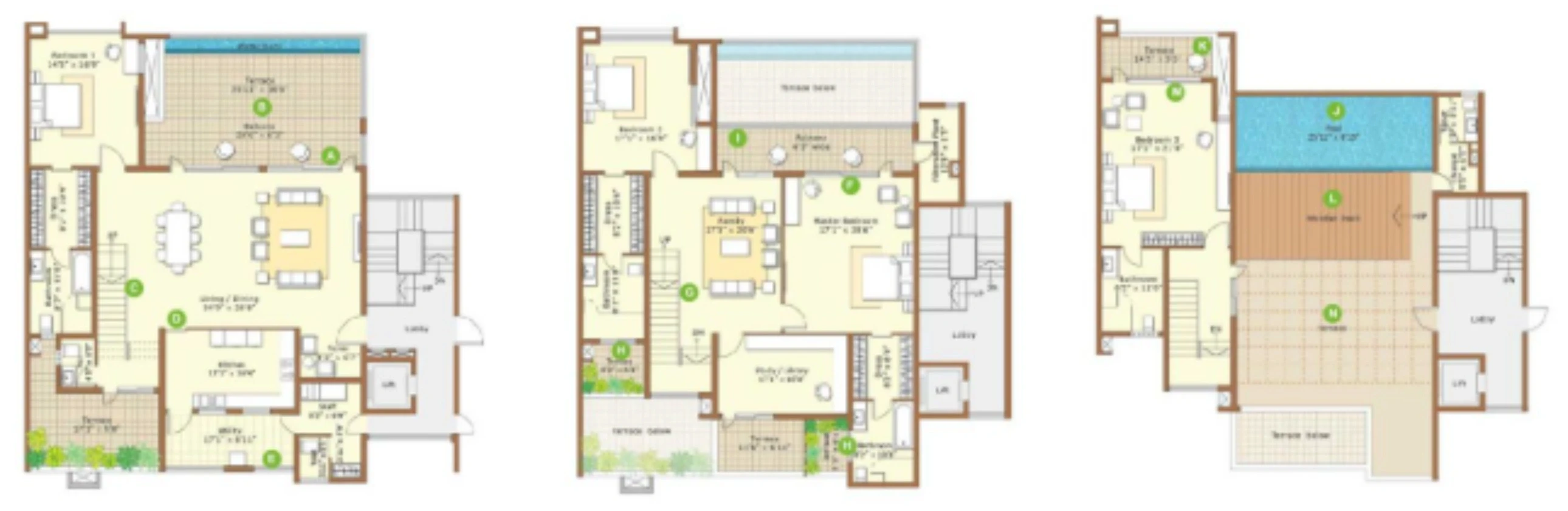 - Configurations: 4 BHK and 4.5 BHK duplex and triplex villaments.