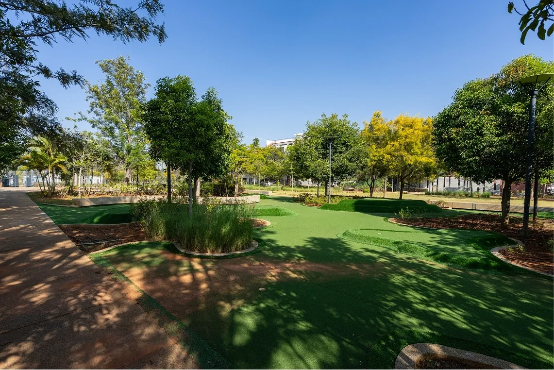 - Over 90% green cover with 32+ parks.