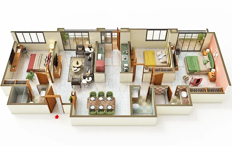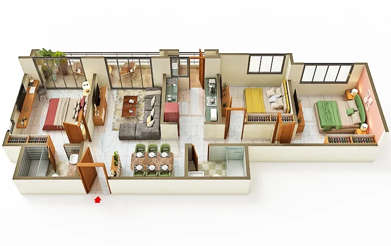Godrej Aveline has 814 luxury homes on 10.07 acres. They come in 3 BHK and 4 BHK configurations, with sizes ranging from 1,593 sq ft to 2,506 sq ft. The homes are designed to be flexible so that they can fit different living styles.