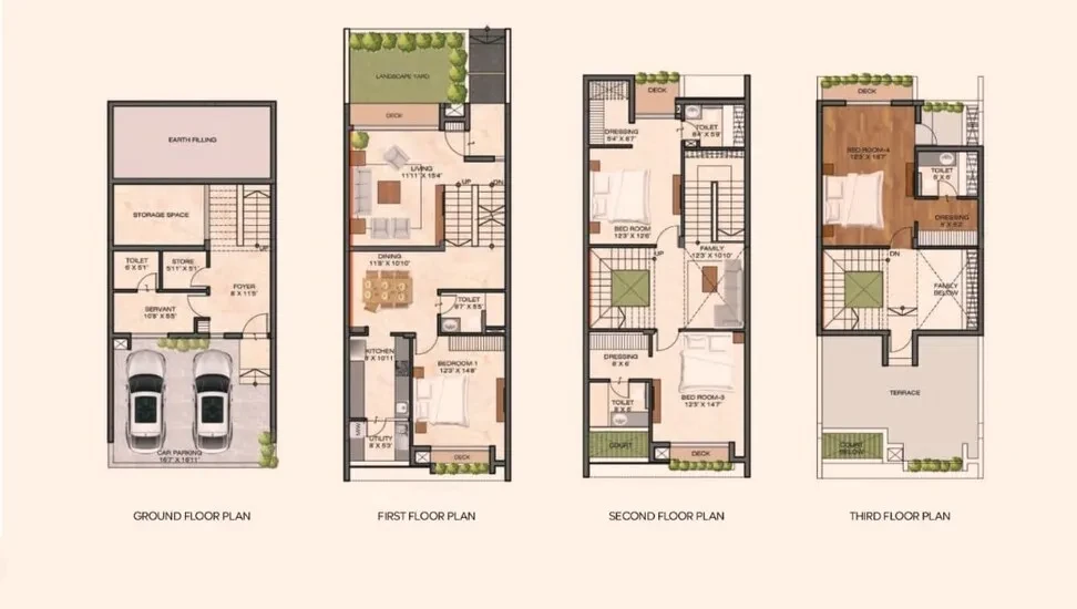 Design: Features like double-height living rooms, staggered floor levels for privacy, and at least 500 sq. ft. of private garden/terrace per unit.