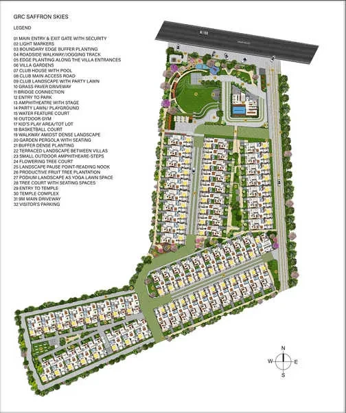 - Key Features: GRC Saffron Skies in Kanakapura spans of 4 acres and comprises 81 well-planned Units within a structures community layout.