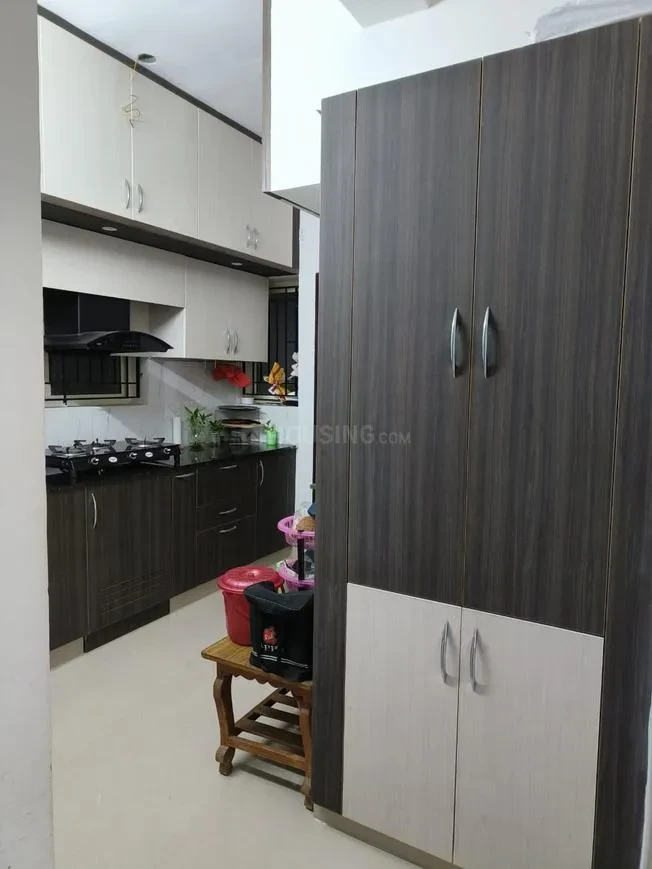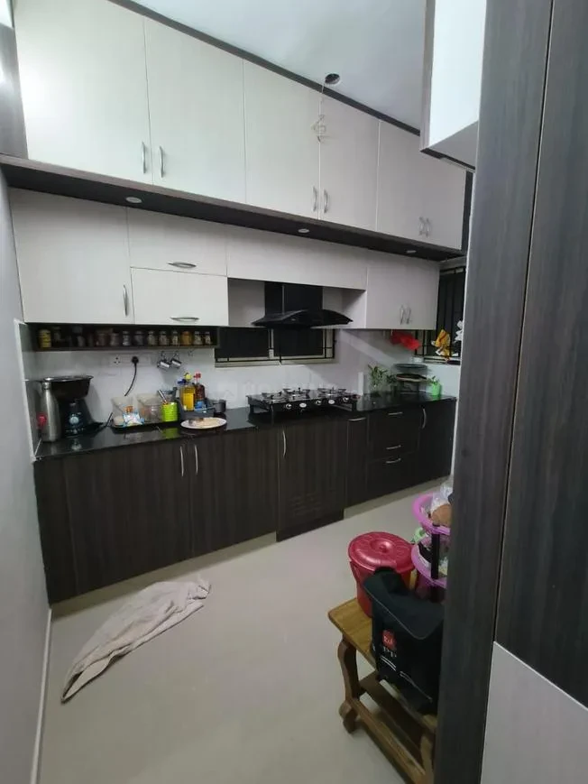 Storage: 3’ wide open shelf with kadappa slabs provided in the kitchen.