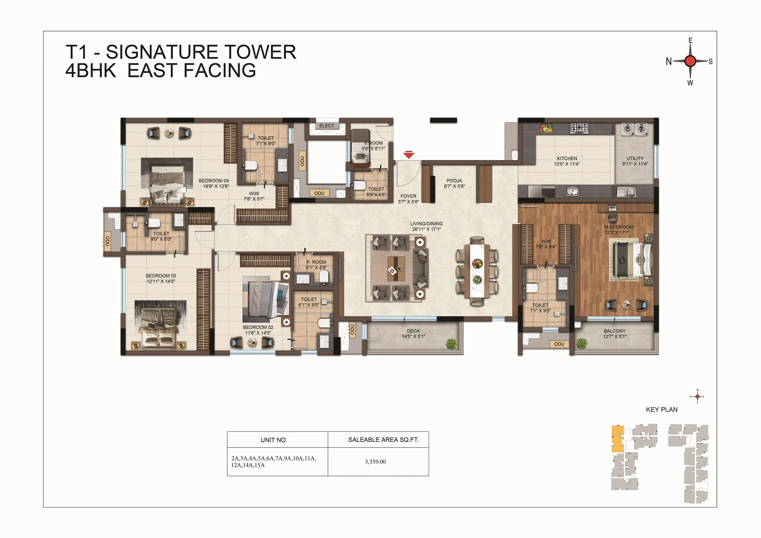 - 4 BHK: 3,359 sq. ft. to 3,384 sq. ft.