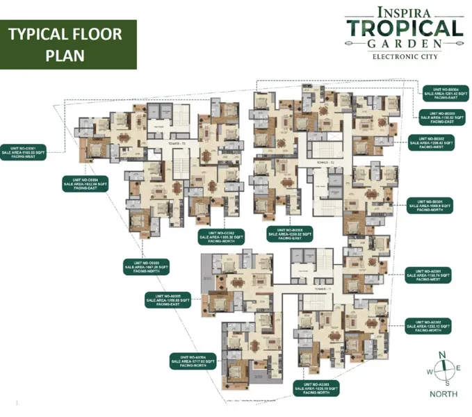 Inspira Tropical Garden offers 2 & 3 BHK Flats in Electronic City designed to perfection keeping the basic principle of Vastu and the option of no common wall resulting in most privacy with abundant sunlight & ample cross ventilation. The three towers rise majestically amidst the thick green trees and sprawling lawns that offer a residence that is par excellence not only in its design & planning but also in the abundant presence of nature. Flats in Electronic City Spread over 2.2 acres with 70% open space & 181 Premium 2 & 3 BHK Apartments in Electronic City, the project is designed to attract an active & healthy lifestyle for all age groups with a wide range of sports amenities, beautifully landscaped jogging track, Amphitheater, children play area, multipurpose hall & much more.