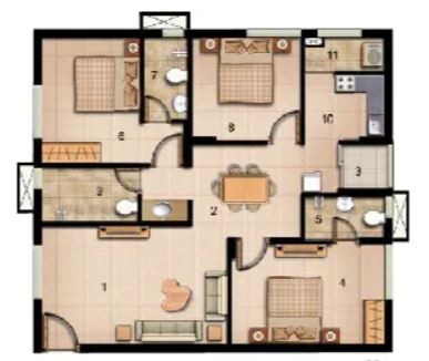 Provision of air conditioning will be provided in the master bedroom, 2nd bedroom, and pipe provision will be given in the 3rd bedroom.