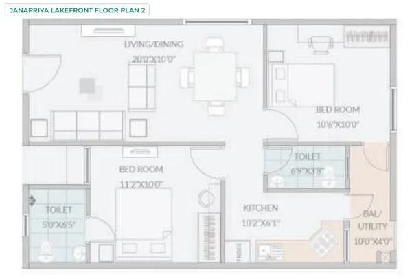 The homes at Janapriya Lakefront are intelligently designed to maximize usable space — offering larger carpet areas and better functional layouts than most other projects in the vicinity. With only 25% common area, residents enjoy maximum living space and true value for their investment.