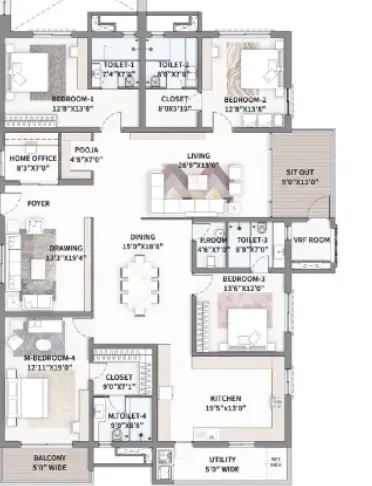 Clubhouse: A world-class facility featuring a gym, spa, yoga/meditation areas, and a mini-theatre.