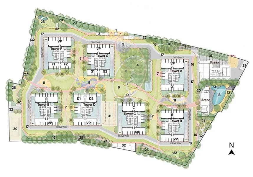 Structure: The project consists of 7 towers, each rising to 28 floors.