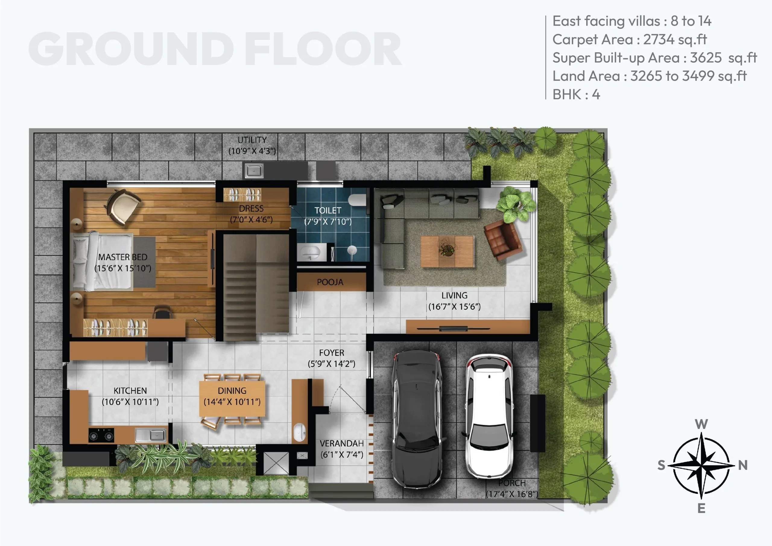 Sustainability: Each villa is equipped with a dedicated EV charging provision and an individual solar water heater.