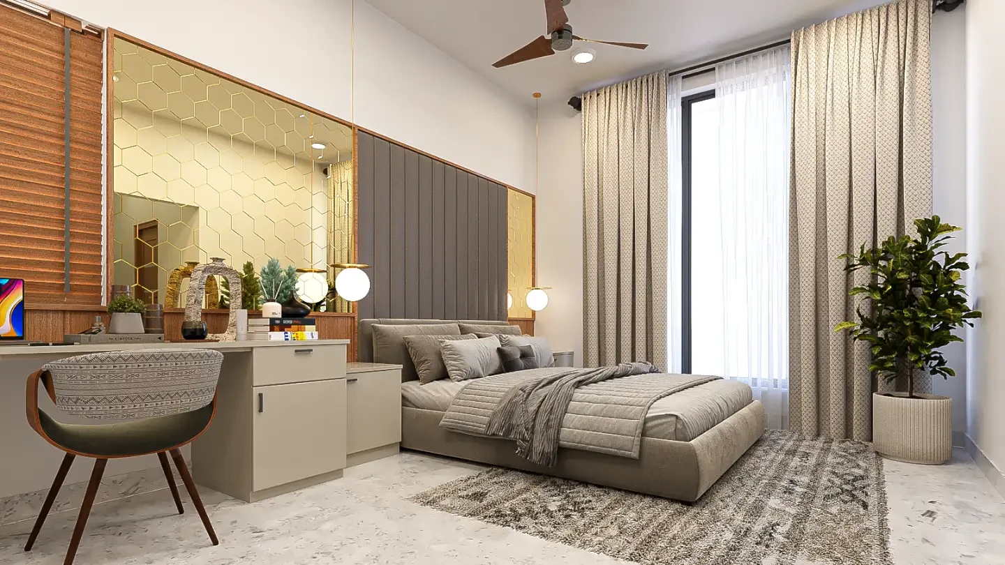 Finished with 3 coats of putty, 1 coat of primer and 2 coats of premium emulsion Asian paint or equivalent.