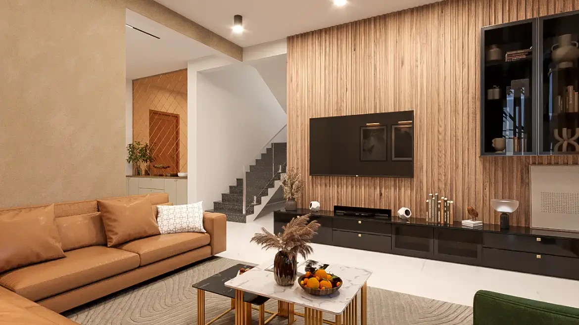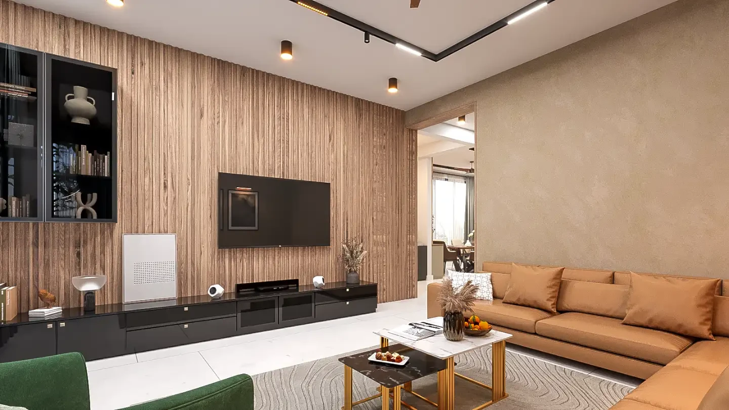 Brick tile cladding, Wood finish tile cladding, exposed concrete texture finish & Italian Marble cladding, as per Architect choice.