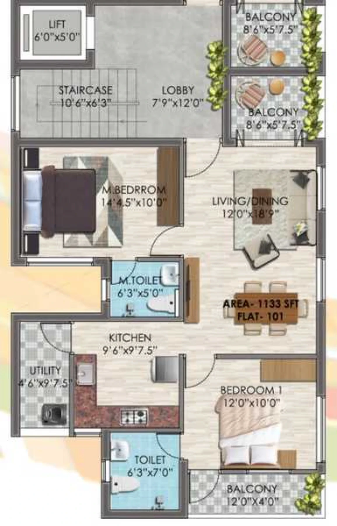 1061 to 1324 Sq.Ft Sq.Ft