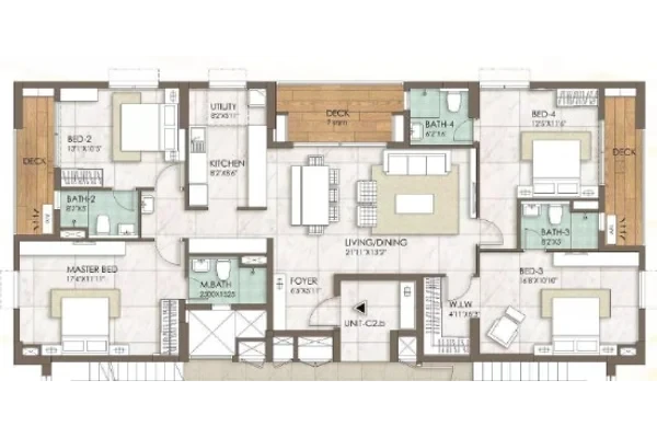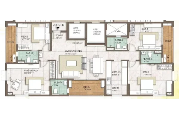 VRV/VRF Air conditioners shall be provided in all Bedrooms, Living and Dining