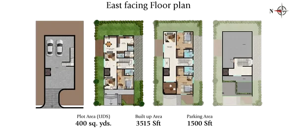 FLOORING Double charged vitrified tiles of SIMPOLO / VITERO / KAJARIA / RAK or equivalent brand in living, drawing, dining, all bedrooms and kitchen. Acid-resistant, Anti-skid ceramic tiles of VITERO / RAK / SIMPOLO / KAJARIA or equivalent brand in bathrooms. Rustic ceramic tiles of RAK/SIMPOLO or equivalent brand in all balconies. BATHROOMS Washbasin of reputed brand. Premium quality EWC of reputed brand. Premium quality concealed cistern of reputed brand. Premium quality single lever CP fitting of reputed brand. Provision for fixing geysers. Exhaust fans provision in toilets. KITCHEN Granite platform and stainless steel sink (provided at extra cost). Provision for both municipal and bore water connections. Provision for water purifier. Provision for chimney. Adequate power points for grinders / mixers / cooking range / exhaust chimney / microwave etc. DOORS AND WINDOWS **Main door:** Manufactured teak door frames and teak veneered shutter finished with good quality melamine polish and hardware of reputed brand. **Internal doors:** Manufactured hard wood door frames and laminated shutter and hardware of reputed brand. **French doors:** UPVC door frames of APARNA/FENESTA/VEKA or equivalent brand with 3-track and float glass panelled sliding shutters. Mosquito mesh is extra and chargeable. **Windows:** UPVC door frames of APARNA/FENESTA/VEKA or equivalent brand with 3-track and float glass shutters. Mosquito mesh and aesthetically designed grill is extra and chargeable. FINISHES **Internal painting:** 2 coats of good quality emulsion paint over putty finished surface / primer coat. **External painting:** Texture finish and 2 coats of weather proof emulsion paint or any other finish as per architect design. **Bathroom Dadoing:** Glazed ceramic tile dado of RAK / SIMPOLO / KAJARIA / VITERO or equivalent brand. **Kitchen Dadoing:** Glazed ceramic tile dado above kitchen platform (provided at extra cost). **Utility/Wash Area Dadoing:** Glazed ceramic tiles dado. Aesthetically designed mild steel (MS) grills with enamel paint finish (provided at extra cost). ELECTRICAL Concealed internal wiring with fire-retardant PVC insulated copper wires for all points. Good quality modular type switches and sockets. Adequate number of light/fan points in every room. Adequate power points in wash area for washing machines/dryers/dishwashers etc. Electrical provision in all bedrooms for split air conditioners (AC copper piping mandatory and charged extra). No provisions for window air conditioners. Separate metering for each unit. 3-phase power connection of required load for each unit depending on size of villas as recommended by the consultant with individual power meter or common power supply. OTHERS Access ramps at all entrances for physically challenged or differently abled. STRUCTURE RCC framed structure: Earthquake resistant foundation with RCC designed and built with shear wall or Myvan or AAC (Auto ClaveAerated Concrete) blocks of premium quality in cement mortar. COMMUNICATIONS Telephone point in living room. Provision for cable TV connection in drawing room, living room and one bedroom. Provision for internet connection in living room. UTILITY SYSTEMS Provision for lift space. 100% DG set backup with acoustic enclosure and AMF. Domestic water made available through an exclusive water softening plant (not RO plant). BMS for electricity consumption and water supply with pre-paid card system.