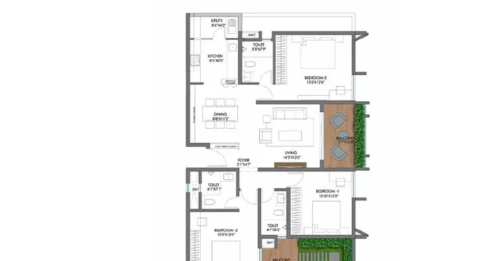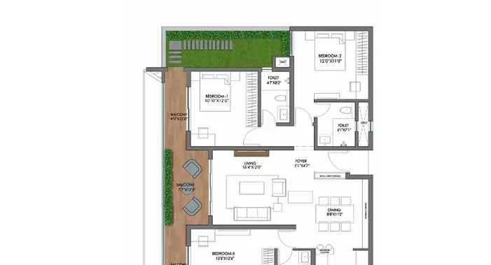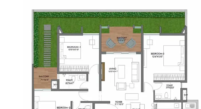 A: Explore spacious 2,3 BHK BHK, sized from 1445 to 1890 Sq.Ft., thoughtfully planned to cater to both family living and investment goals.