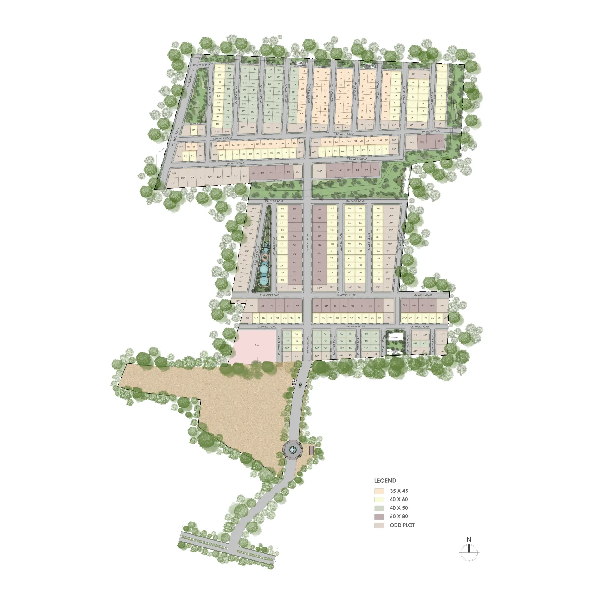 Spread across 75 acres in Sarjapura, Ayana Woods is envisioned as a rare tropical estate designed for those who value space, wellness, and architectural distinction. Inspired by authentic modern Balinese design principles — earthy textures, open courtyards, lush green corridors, and natural contours.