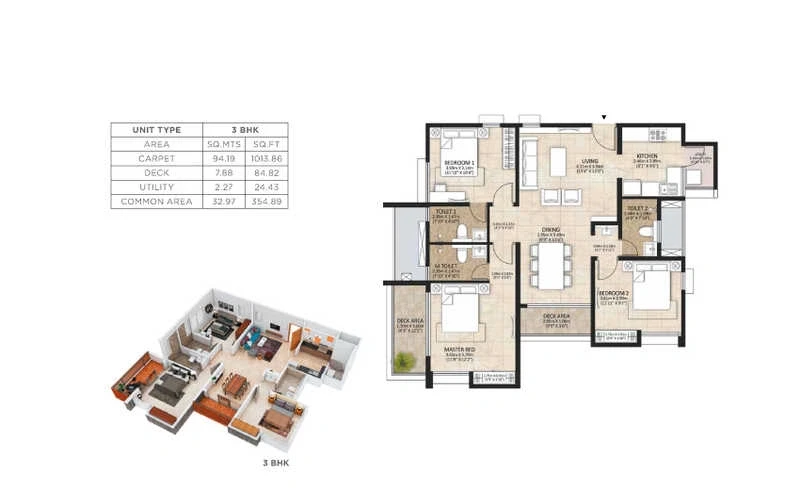 Unit Sizes: 2 BHK apartments are approximately 1079 sq. ft., while 3 BHK units are around 1478–1479 sq. ft..