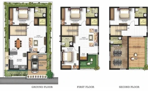 Nestled amidst nature, Green Woods offers villa plots ranging from 180-360 Sq yards with built-up areas ranging from 2756 sft to 4136 sft. Each villa boasts of spacious layouts, designed to provide you with the ultimate comfort and opulence. The project is located on a 400 feet main road with 30 feet internal roads, providing easy accessibility to all the amenities.