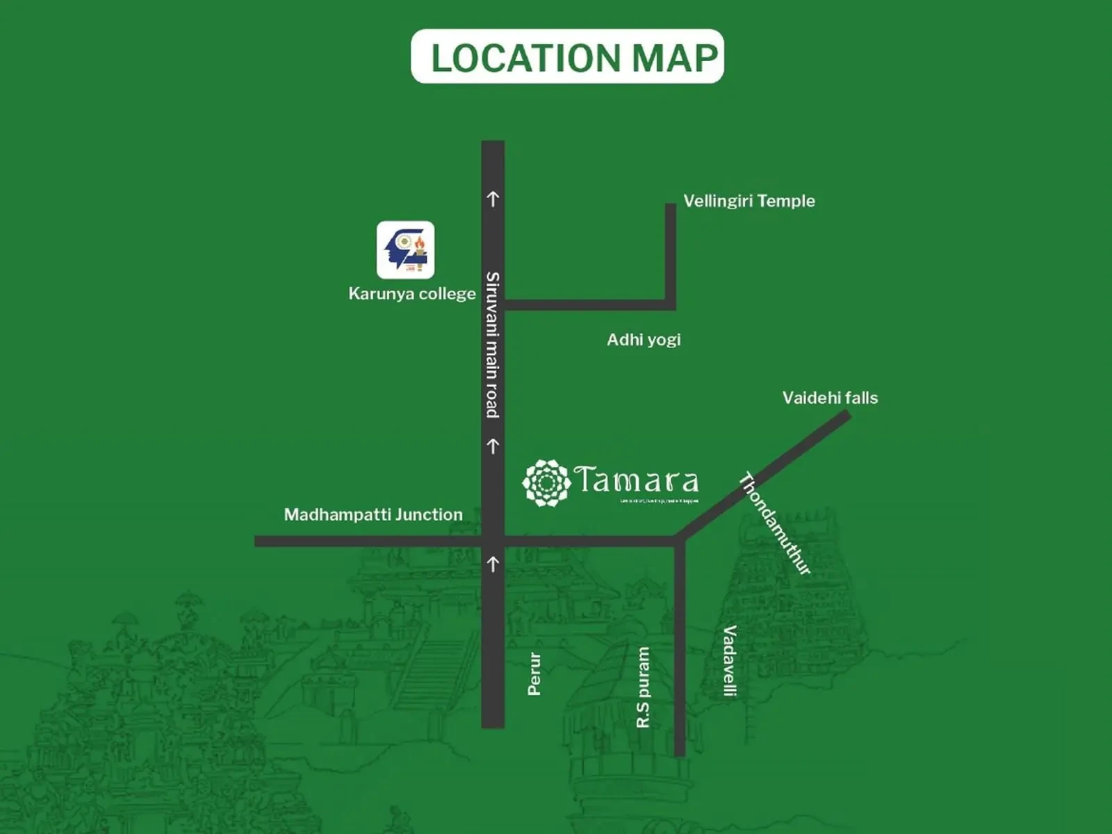 Mayon’s Tamara presents an exclusive collection of 20 premium DTCP-approved residential plots ranging from 9,293 sq.ft to 12,555 sq.ft, located on Thondamuthur Road, Madampatti, Coimbatore. Ideal for luxury villas, farmhouses, or long-term investment, these spacious plots are surrounded by lush greenery and scenic views, offering a serene and pollution-free lifestyle. The gated layout features blacktop roads, street lighting, green open spaces, and 24×7 secure access, ensuring both comfort and safety. Strategically located near Perur, Vadavalli, RS Puram, and with quick access to schools, temples, and the upcoming Western Ring Road, Tamara blends nature with urban convenience for peaceful yet well-connected living.