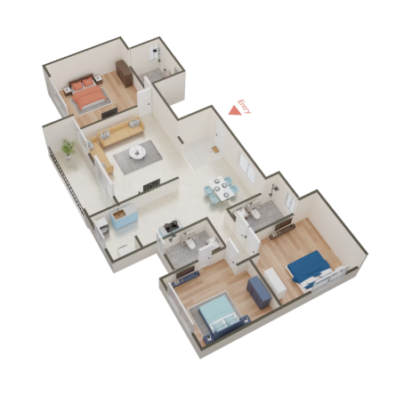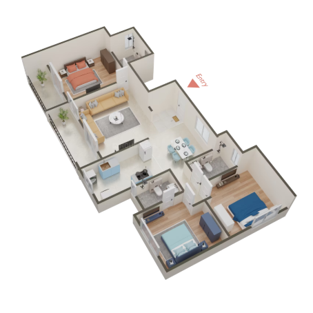 Modern Spaaces Green Storeys offers 2 and 3 BHK premium apartments with varying sizes 1349 square feet to 1851 square feet. Which is promoting a sense of community while offering ample space for residents to enjoy a comfortable and peaceful lifestyle.