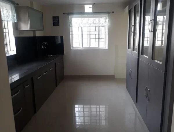 Matching ceramic tiles up to door height. Good quality sanitary and CP fittings. Provision for Washing Machine.