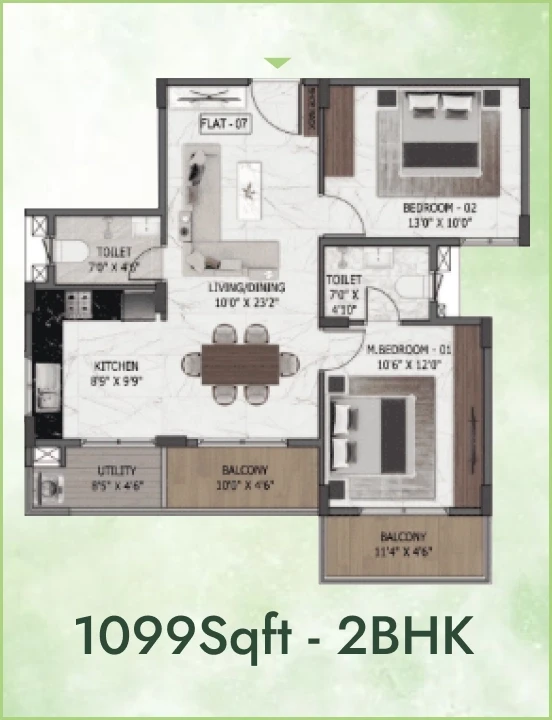 Configuration: 2 & 3 BHK Vastu-compliant apartments across two high-rise towers (Basement + Ground + 7 floors).