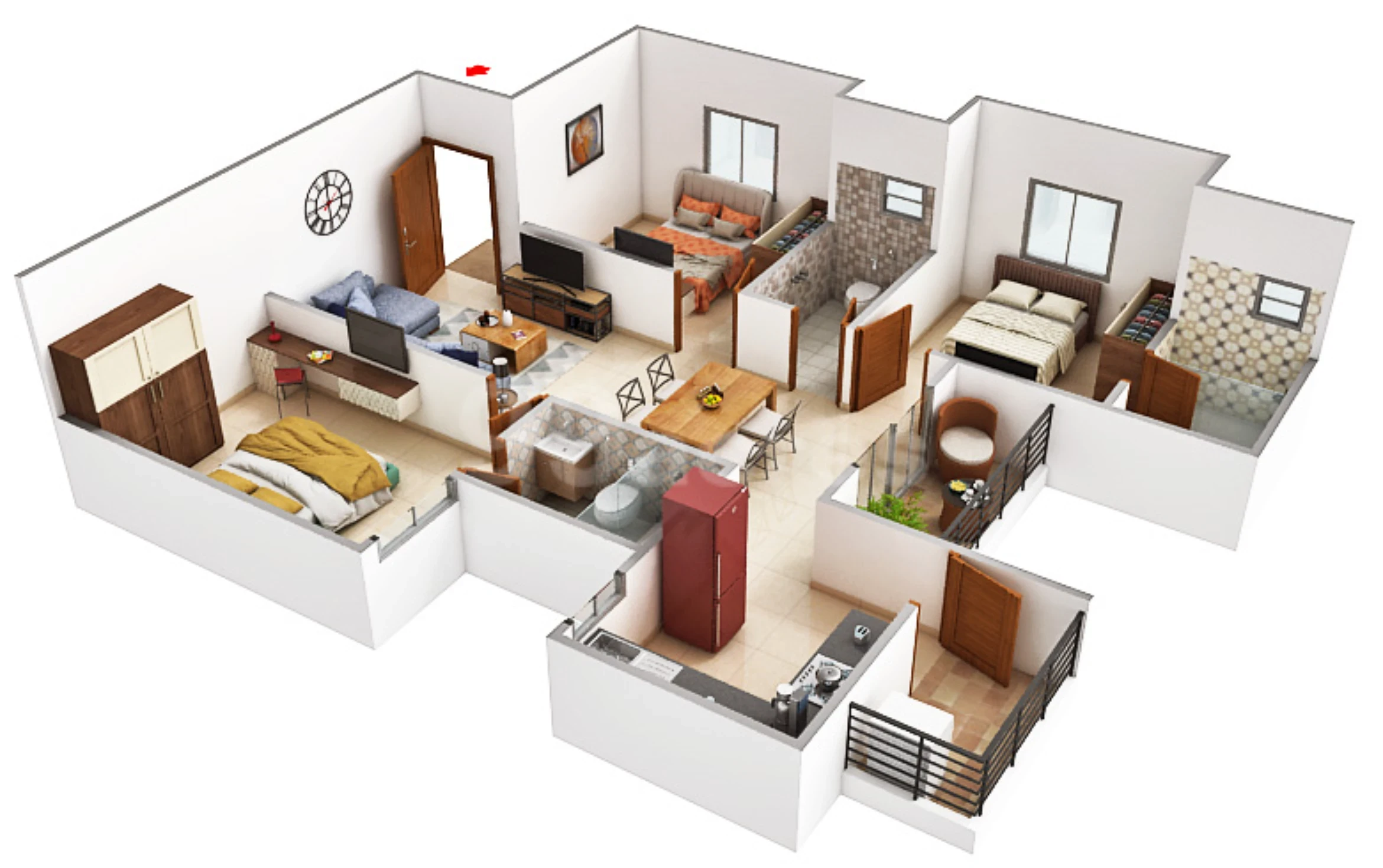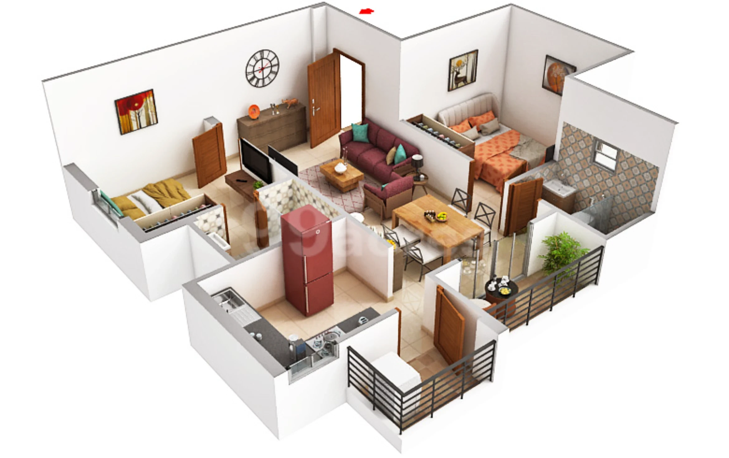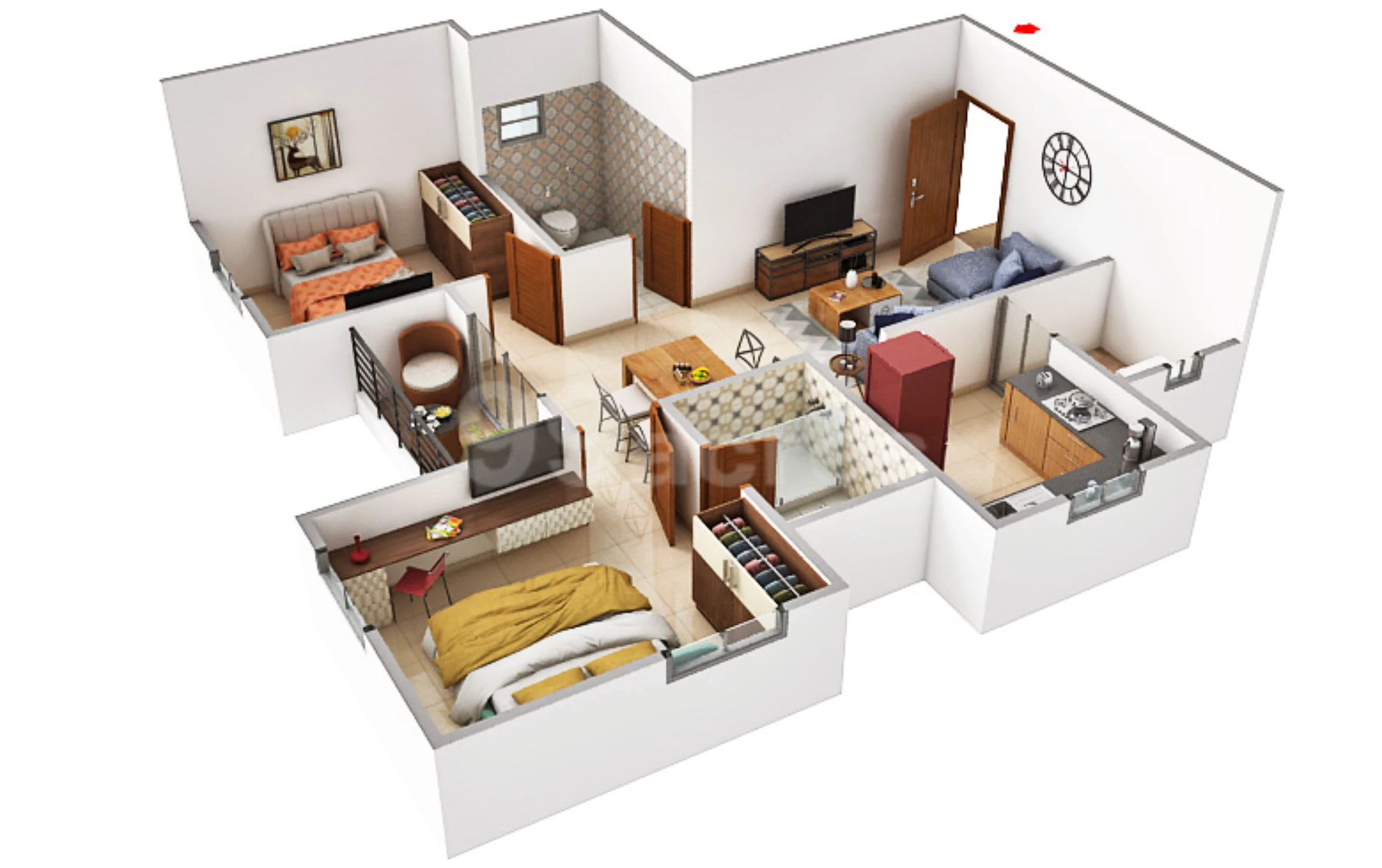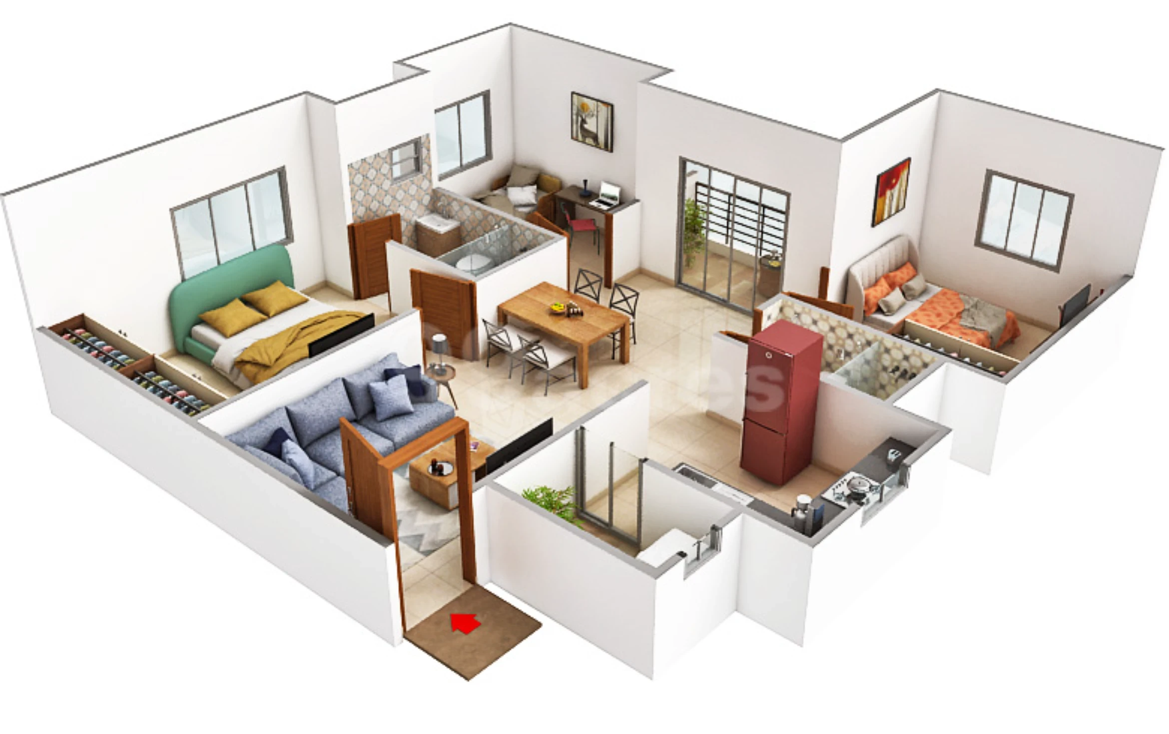 - Smart Living: Features space-optimizing furniture and maximum utilization of carpet area.