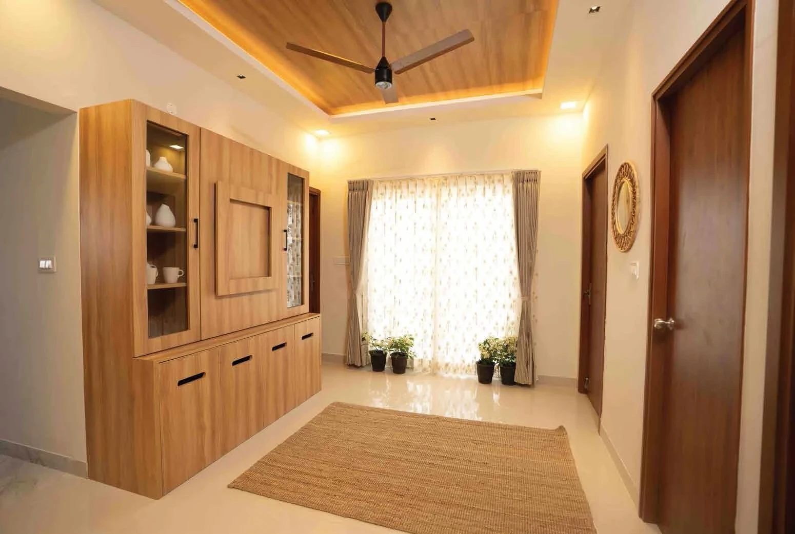 - Doors: Laminated flush doors with mahogany frames for the main door.