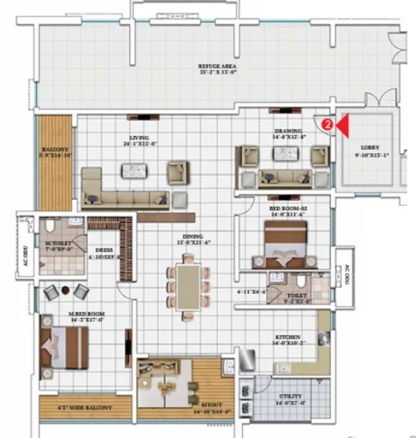 Waterproofing shall be provided for all bathrooms, balconies, utility area & roof terrace.