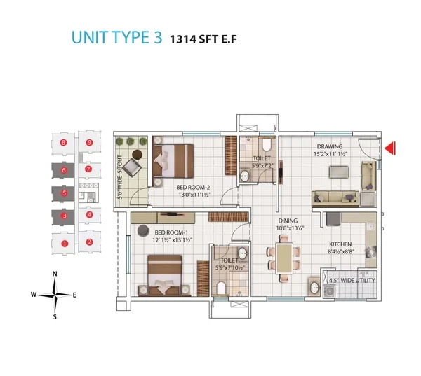 - Balconies/Bathrooms/Utility : Anti-skid vitrified/ceramic tiles