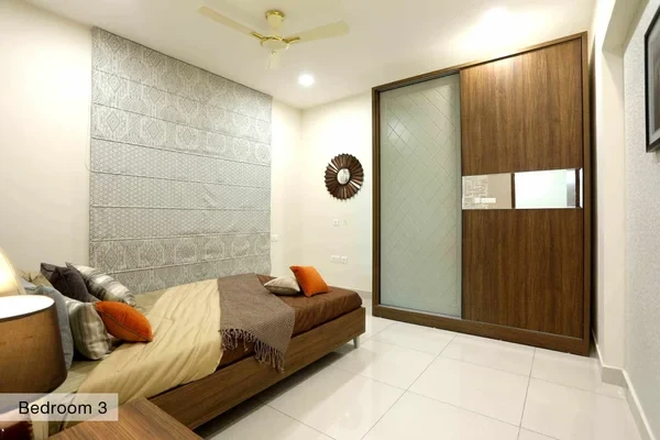 - Main Door: Hard wood frame, finished with melamine spray polish, teak finished flush shutters with reputed Hardware.