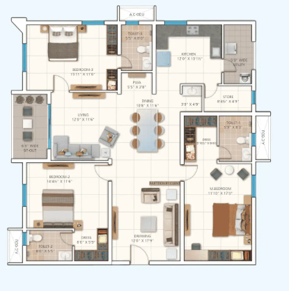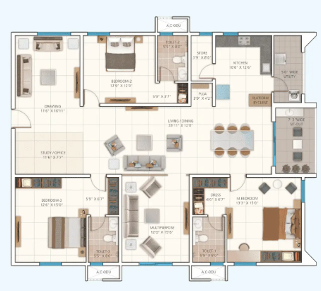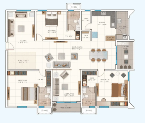 Waterproofing shall be provided for all Bathrooms, Balconies, Utility Area & Roof terrace.