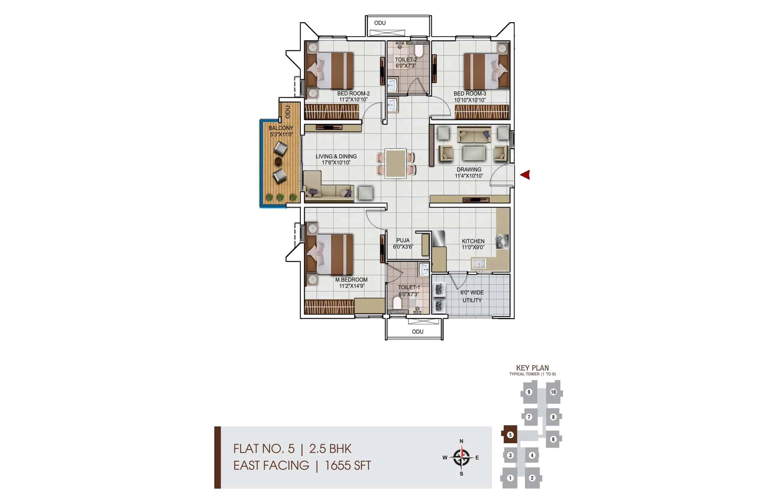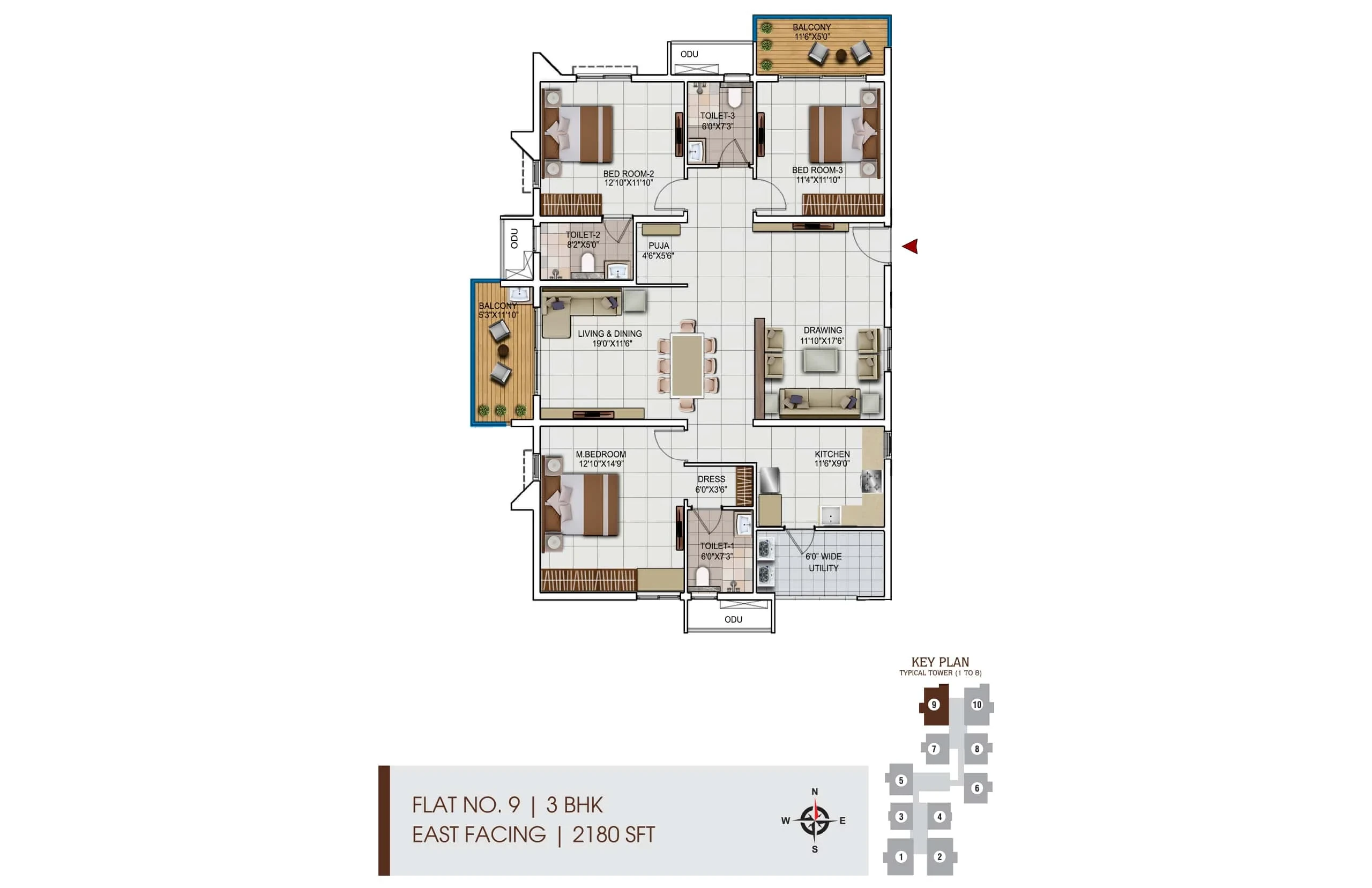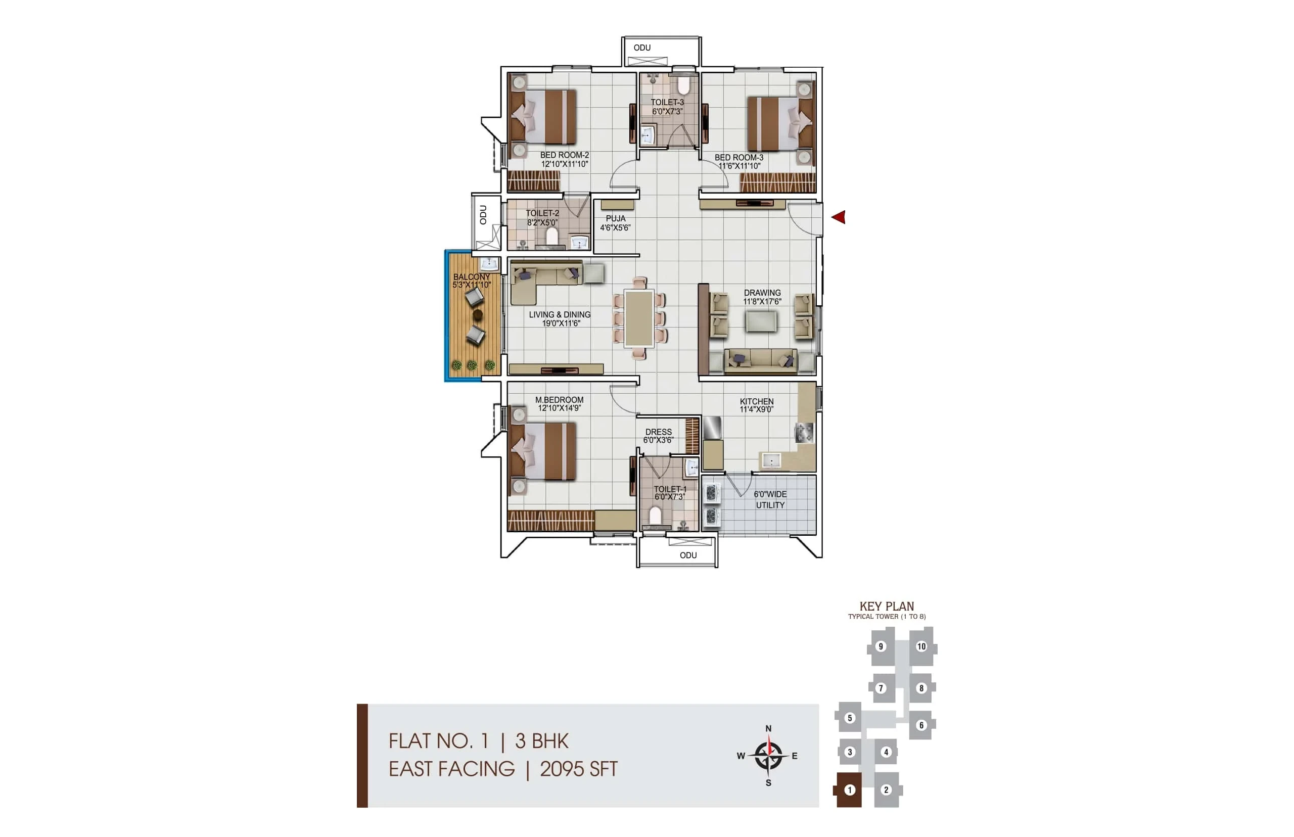 BALCONY/BATHROOMS/UTILITY: Anti-skid vitrified/ceramic tiles of reputed make.
