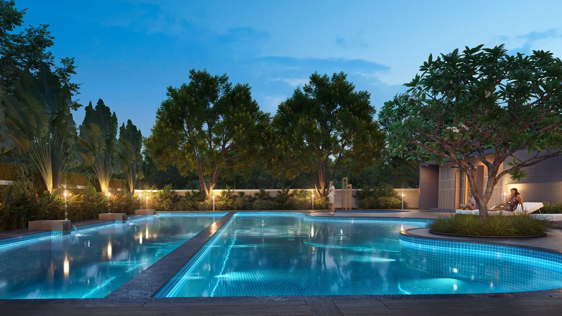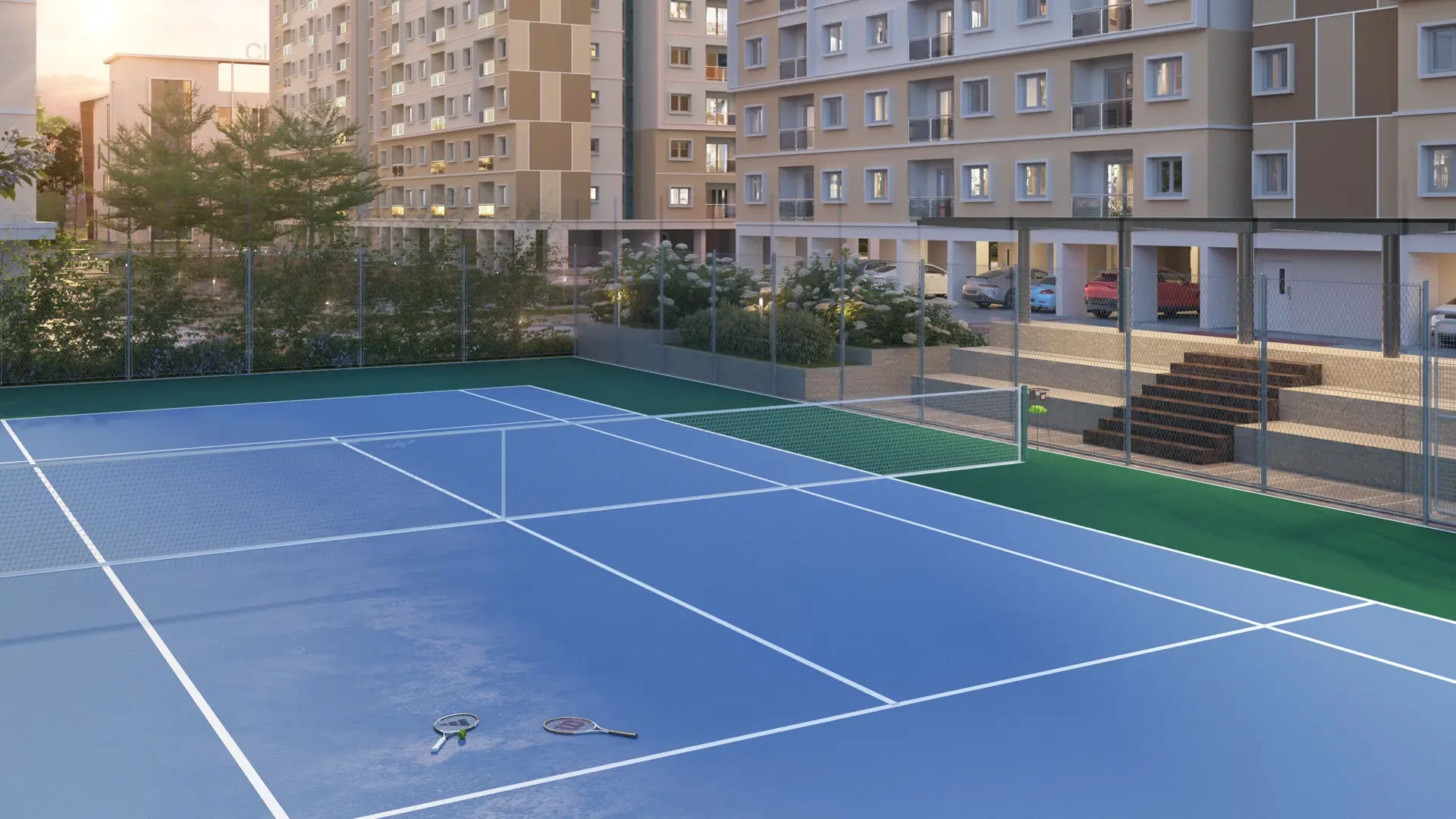 Nambiar Millennia offers a wide variety of lifestyle amenities for its residents. Facilities include a modern gymnasium, clubhouse, swimming pool, indoor games area, tennis court, and basketball court. Additional features include landscaped jogging tracks, stone-paved walkways, a dedicated footwear zone, green lawns, and a sandy water-inspired play area for relaxation and outdoor enjoyment.