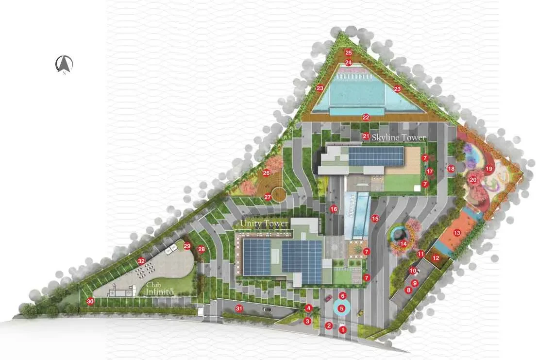 Configuration: The project features two iconic towers (Skyline and Unity) offering spacious 4 BHK and 5 BHK sky homes.