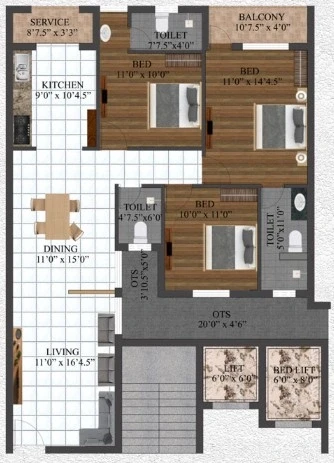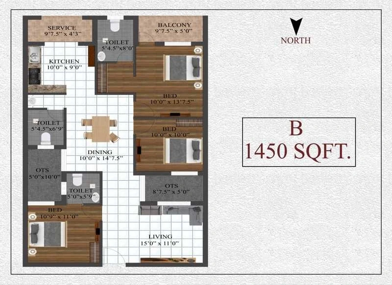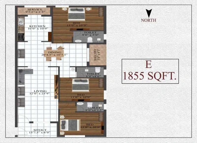 Unit Configuration: Exclusively offers 3 BHK flats with sizes ranging from approximately 1,450 to 1,847 sq. ft..