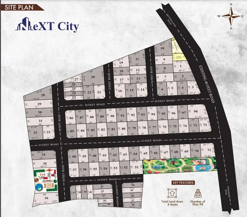 Next City by Manchester Properties is a thoughtfully planned residential project located in the rapidly growing suburb of Veerapandi Pirivu on Mettupalayam Road, Coimbatore. Spread across approximately 7.6 acres, this development offers a mix of residential plots and villas, catering to varied lifestyles.