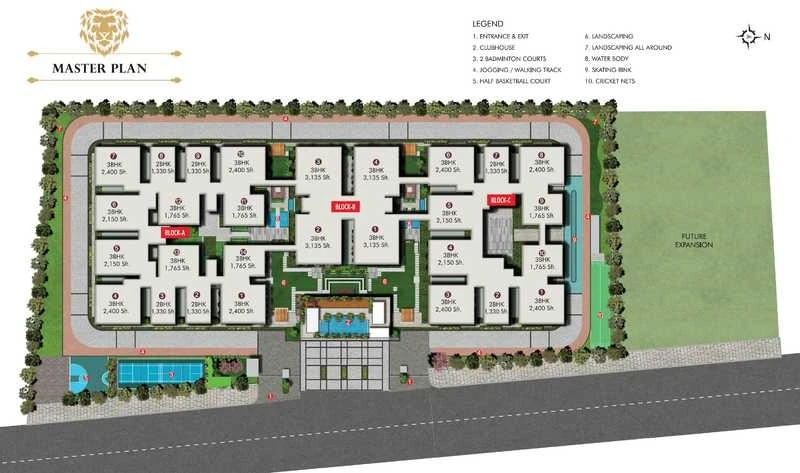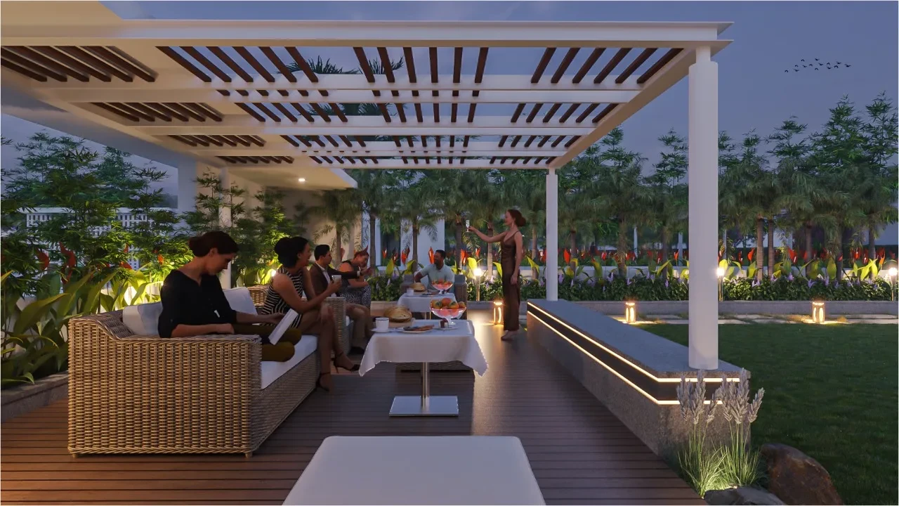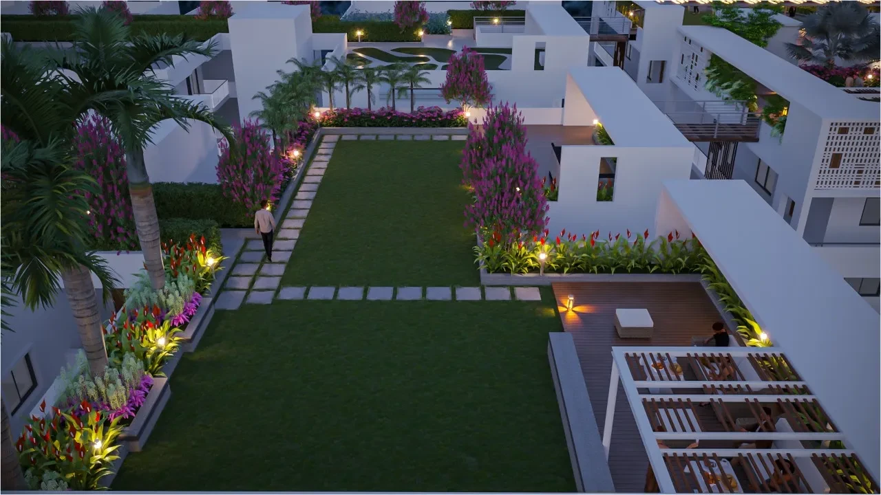 Landscaping: Landscaping shall be provided in the open areas of the layout with garden furniture, relaxing facilities for senior citizens, children's park, buffer avenue trees all around the apartments, etc.