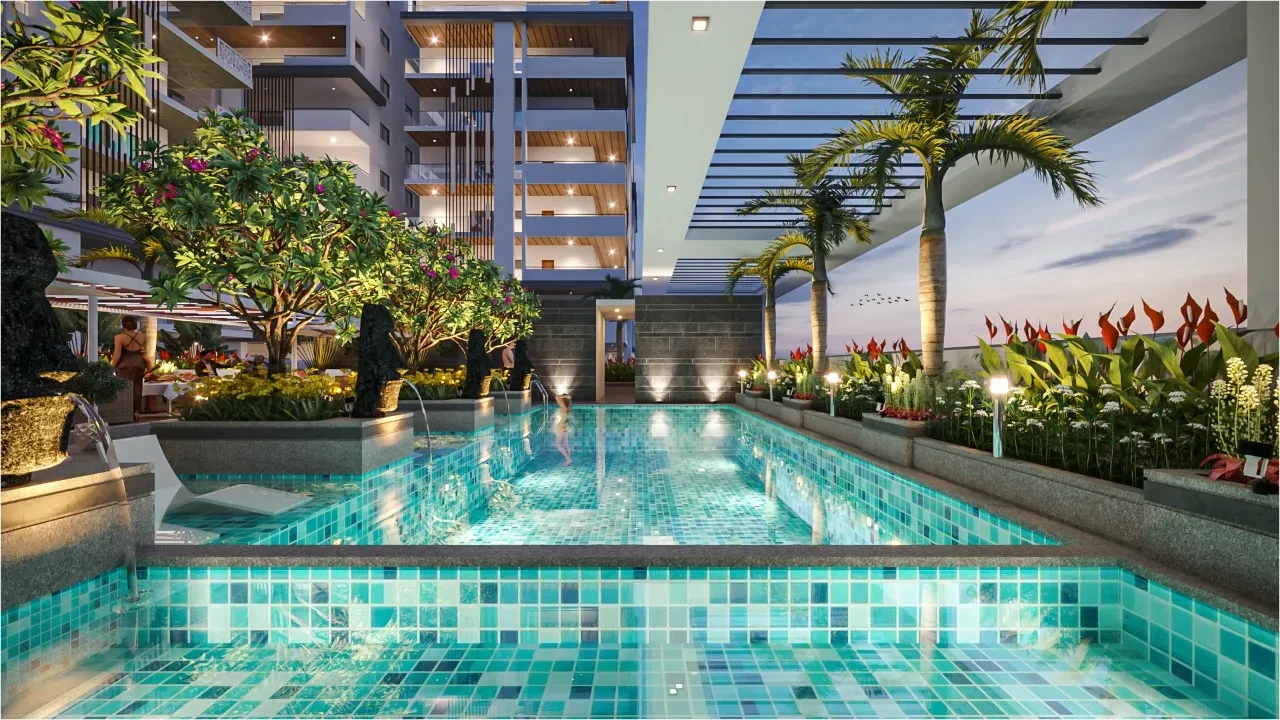 Clubhouse: Well-designed clubhouse with facilities like indoor games, gym, yoga room, reading and activity room, multi-purpose hall, and guest rooms. Terrace swimming pool with change rooms.