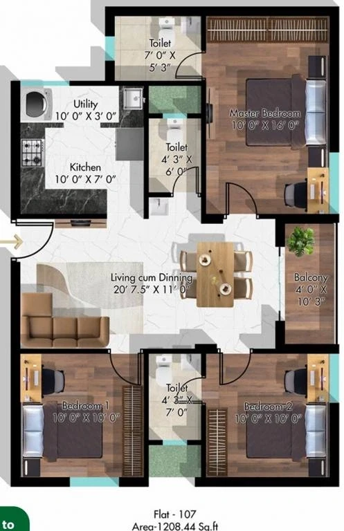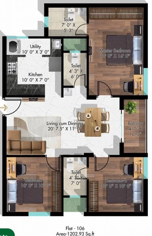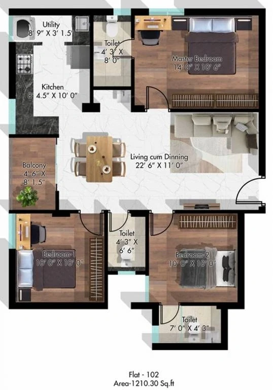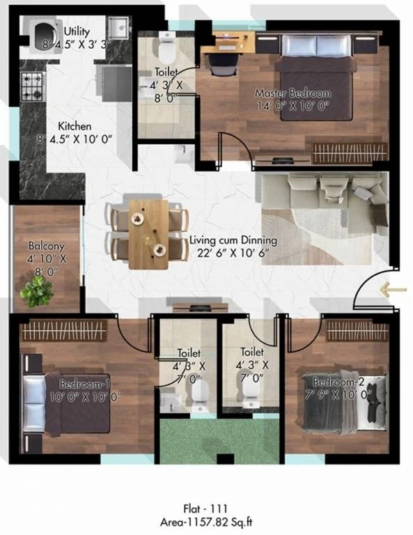 3 BHK Apartments: Sizes range from approximately 1,157 sq. ft. to 1,210 sq. ft..