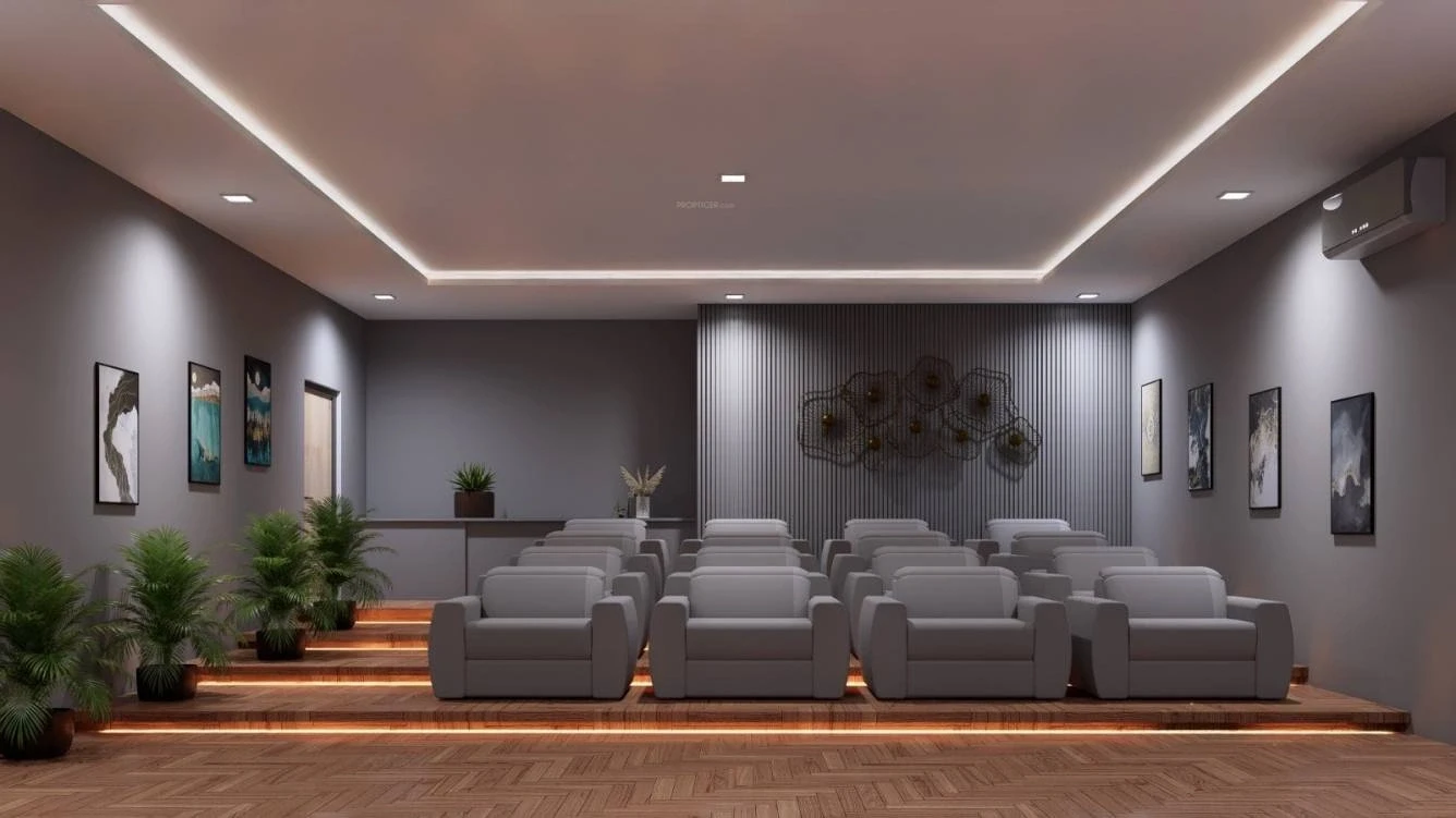 Entertainment: Residents have access to a 20-seat community theater, a community hall, and a dedicated game room.